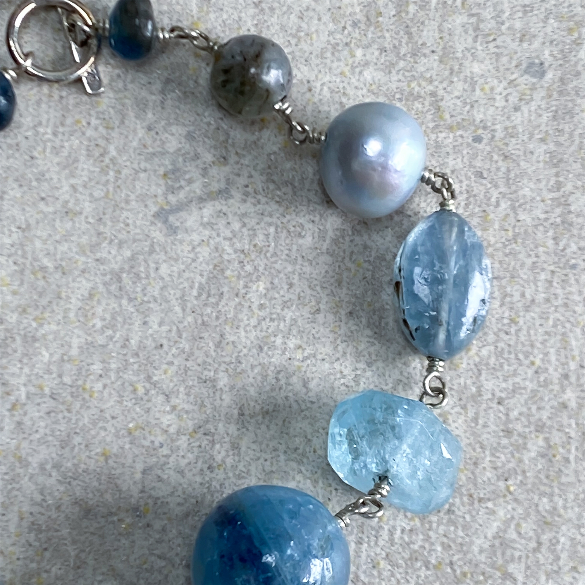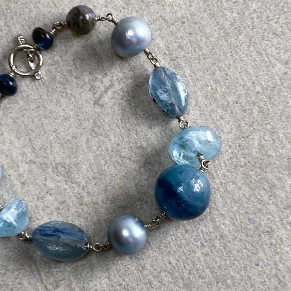 Smukt armbånd med sten og perler i turkisblå nuancer fra Rabinovich