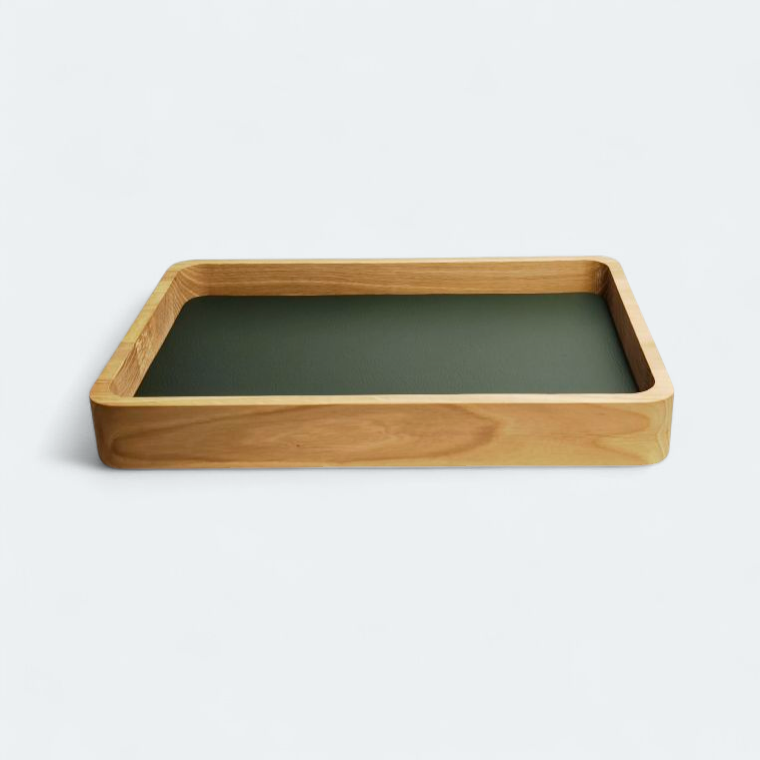 Valet i natur egetræ - placer dine ure og smykker med stil - flere farver læder